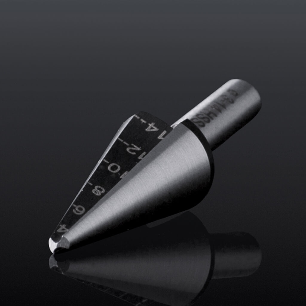 Mit 2 Schneiden zum Stufenlosen Vorbohren der Kunststoffplatten von 3 - 14 mm Bohrdurchmesser